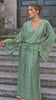 Abrigo tipo capa largo de lana con cuadros tono verde oliva con cuello de terciopelo de algodón en color marrón....