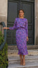 Abrigo largo de lana en cuadro azul en tono con detalles de terciopelo de algodón en color azul marino en...