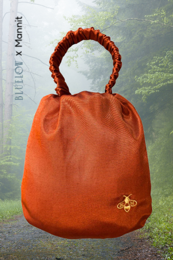 El bordado a mano en ambos lados lo convierte en un detalle único dentro de esta edición limitada, creada en colaboración entre BLUELOW y Mannit.