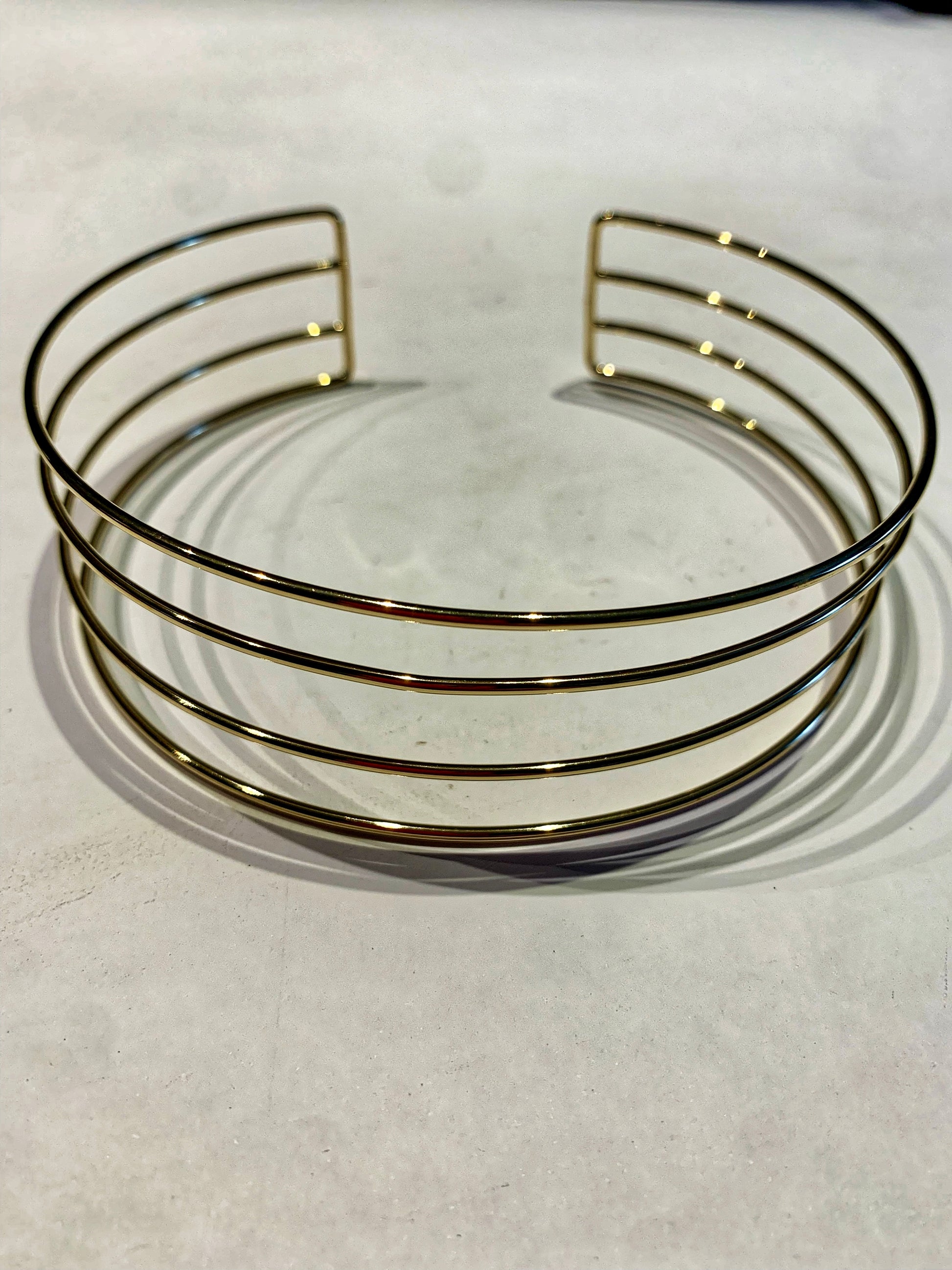 Choker de cuatro líneas de acero dorado.