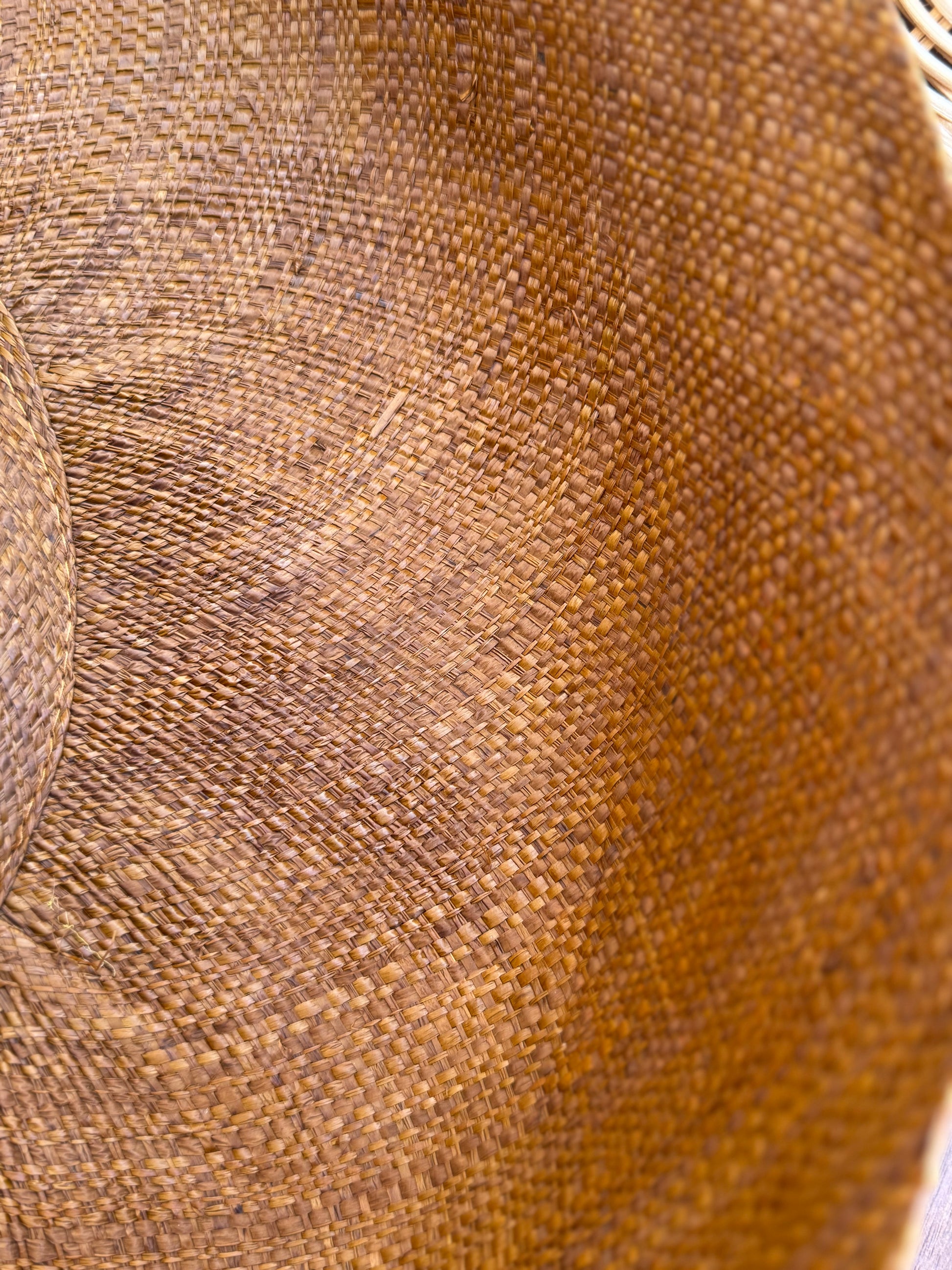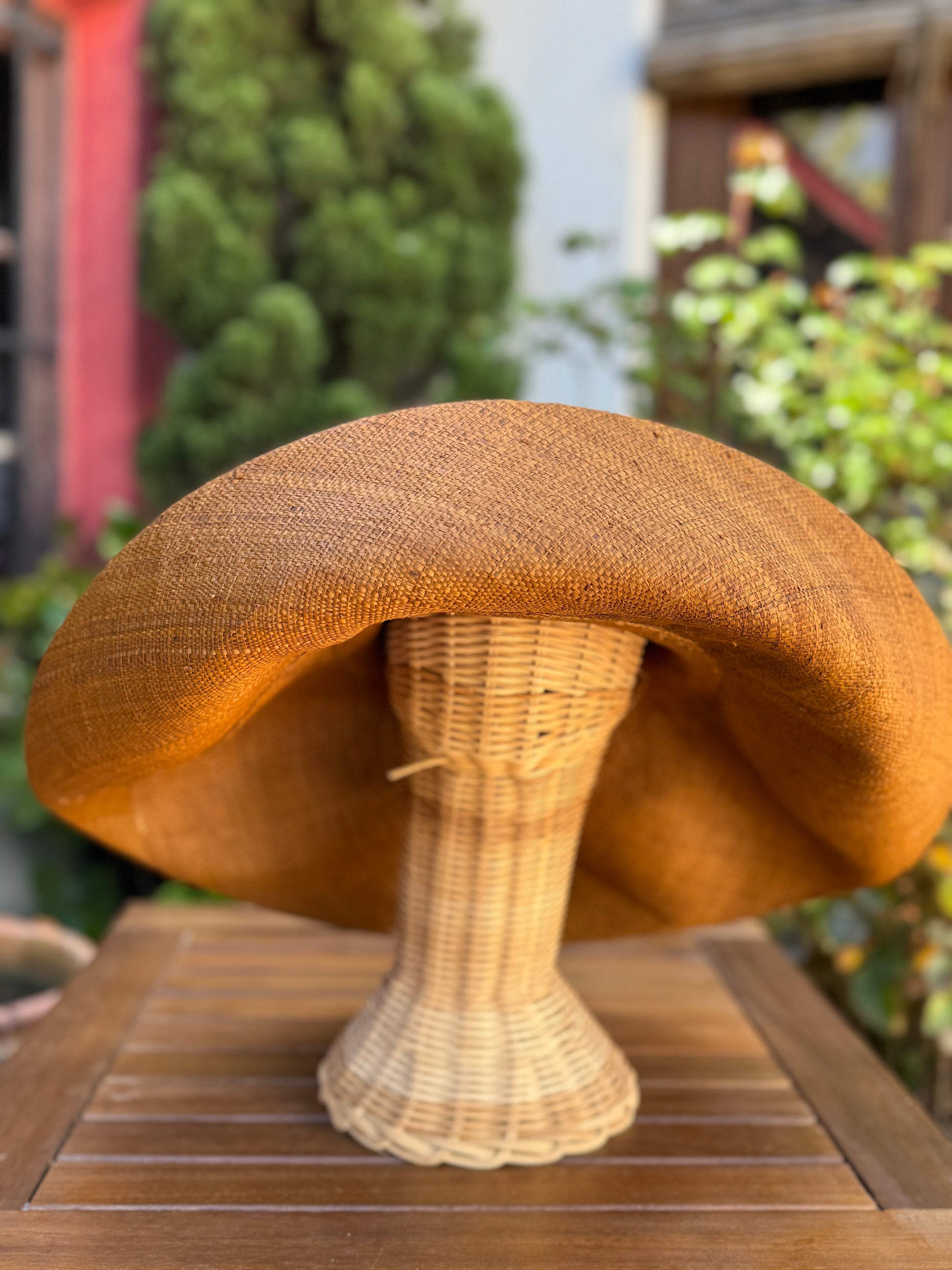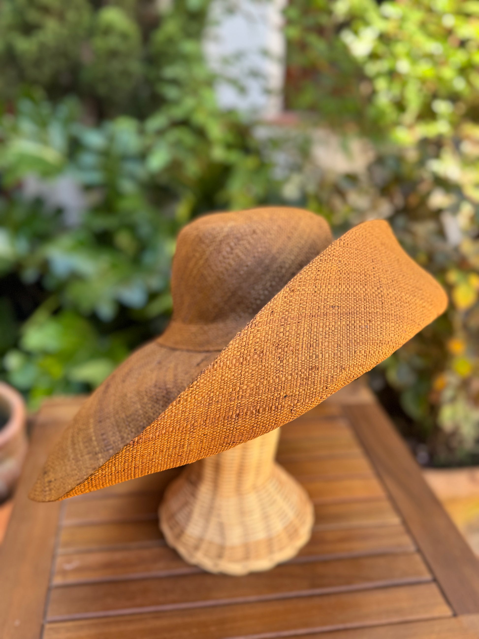 Pamela de rafia natural teñida a mano. Muy moldeable, se puede colocar de diferentes formas. Es el complemento perfecto.