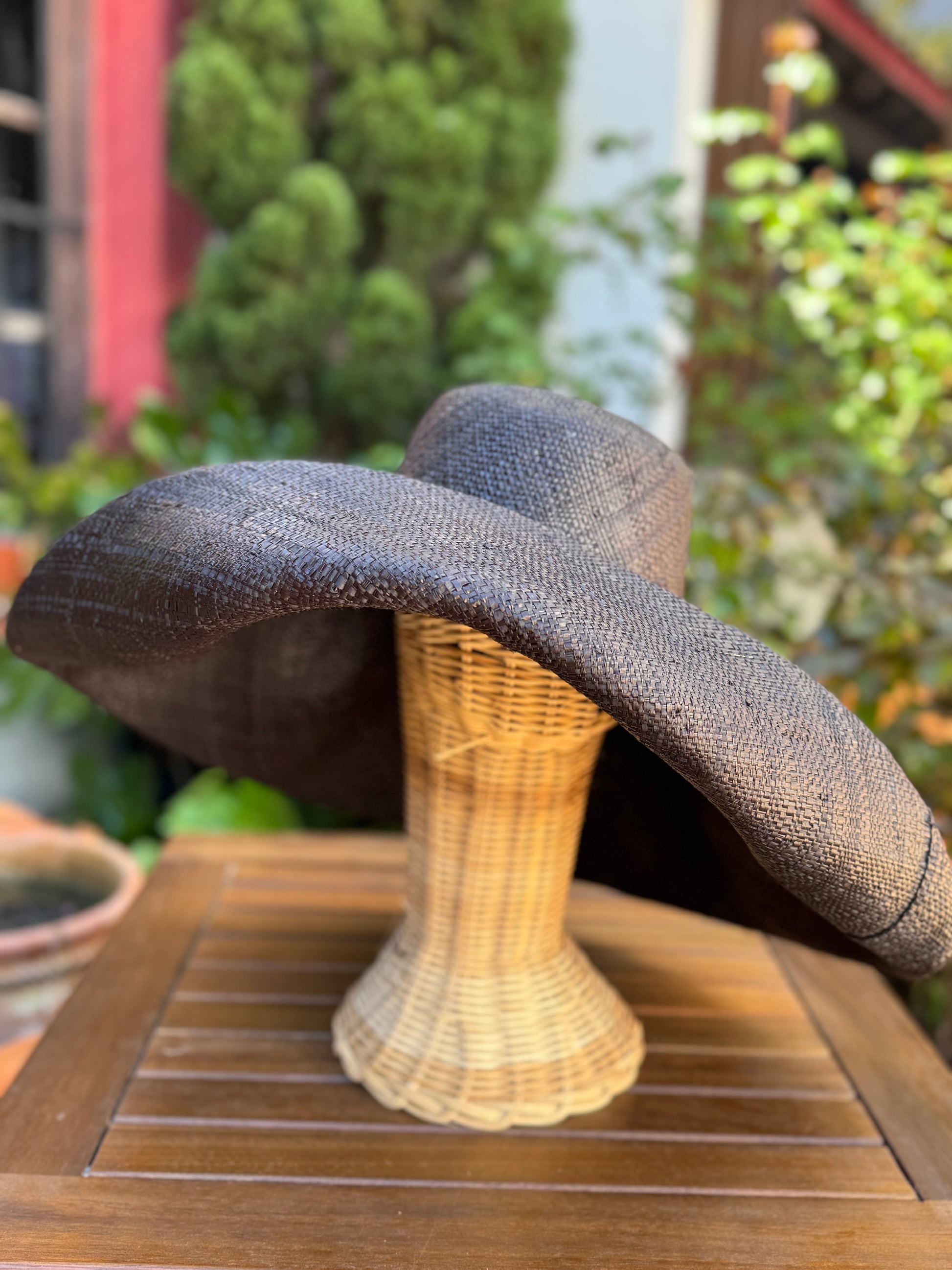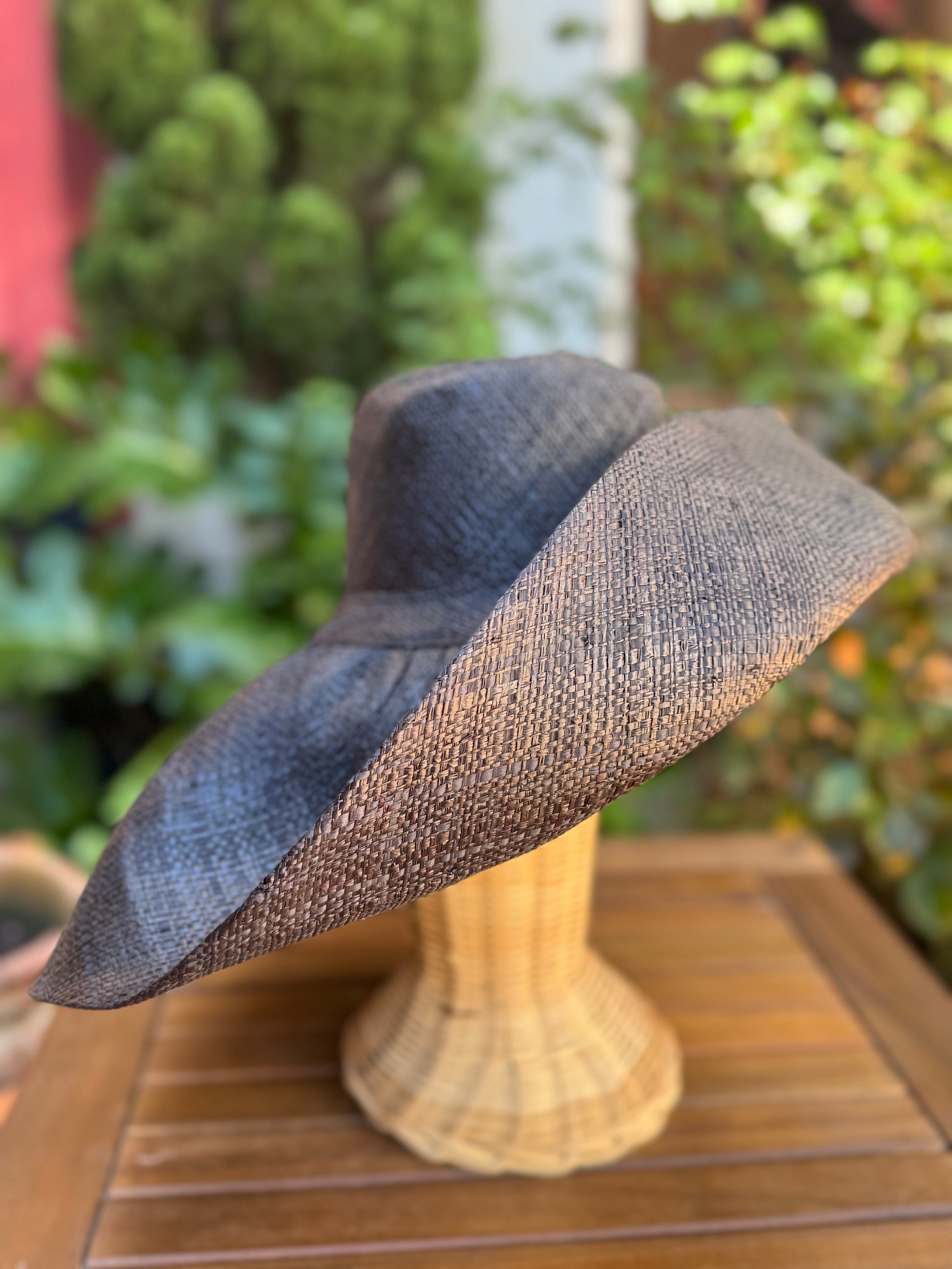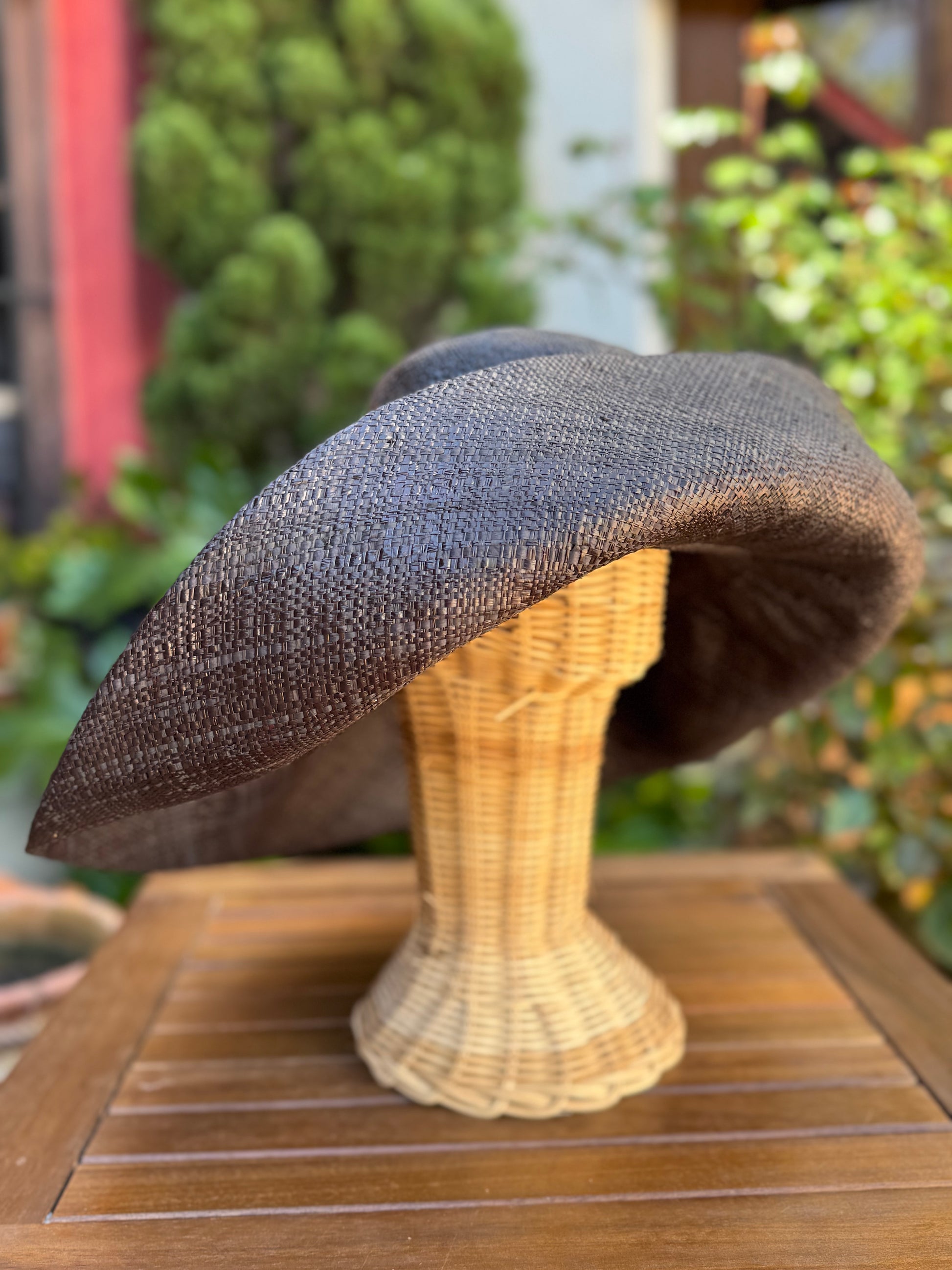 Pamela de rafia natural teñida a mano. Muy moldeable, se puede colocar de diferentes formas. Es el complemento perfecto.