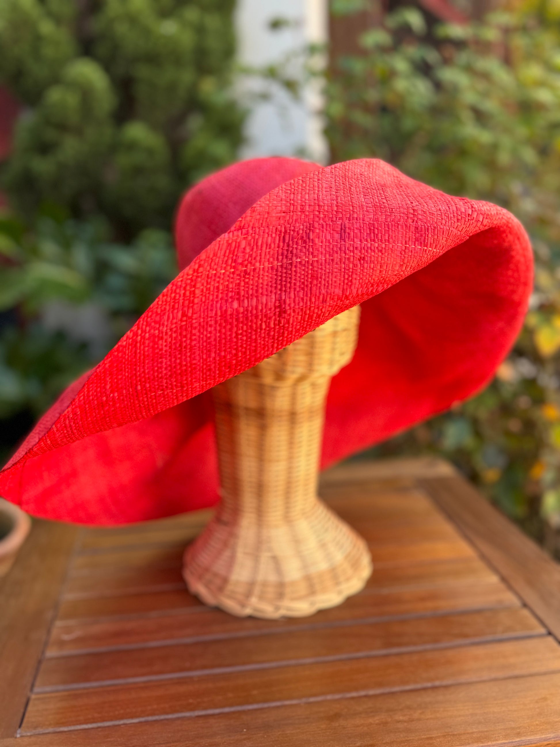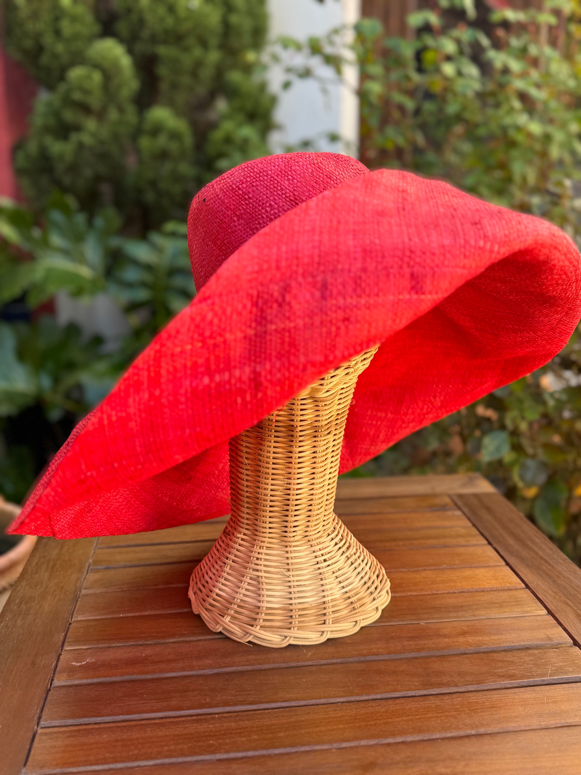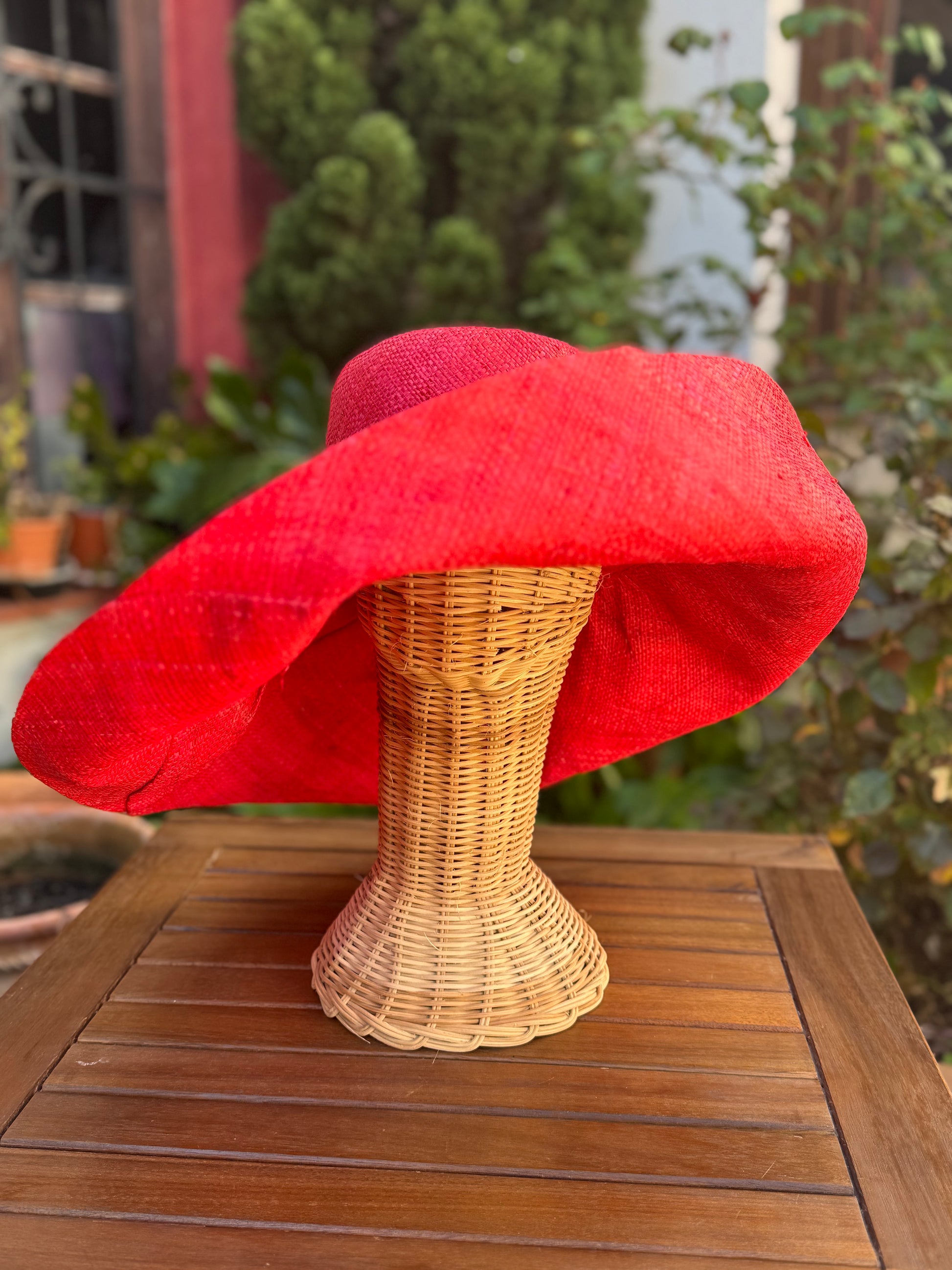 Pamela de rafia natural teñida a mano. Muy moldeable, se puede colocar de diferentes formas. Es el complemento perfecto.