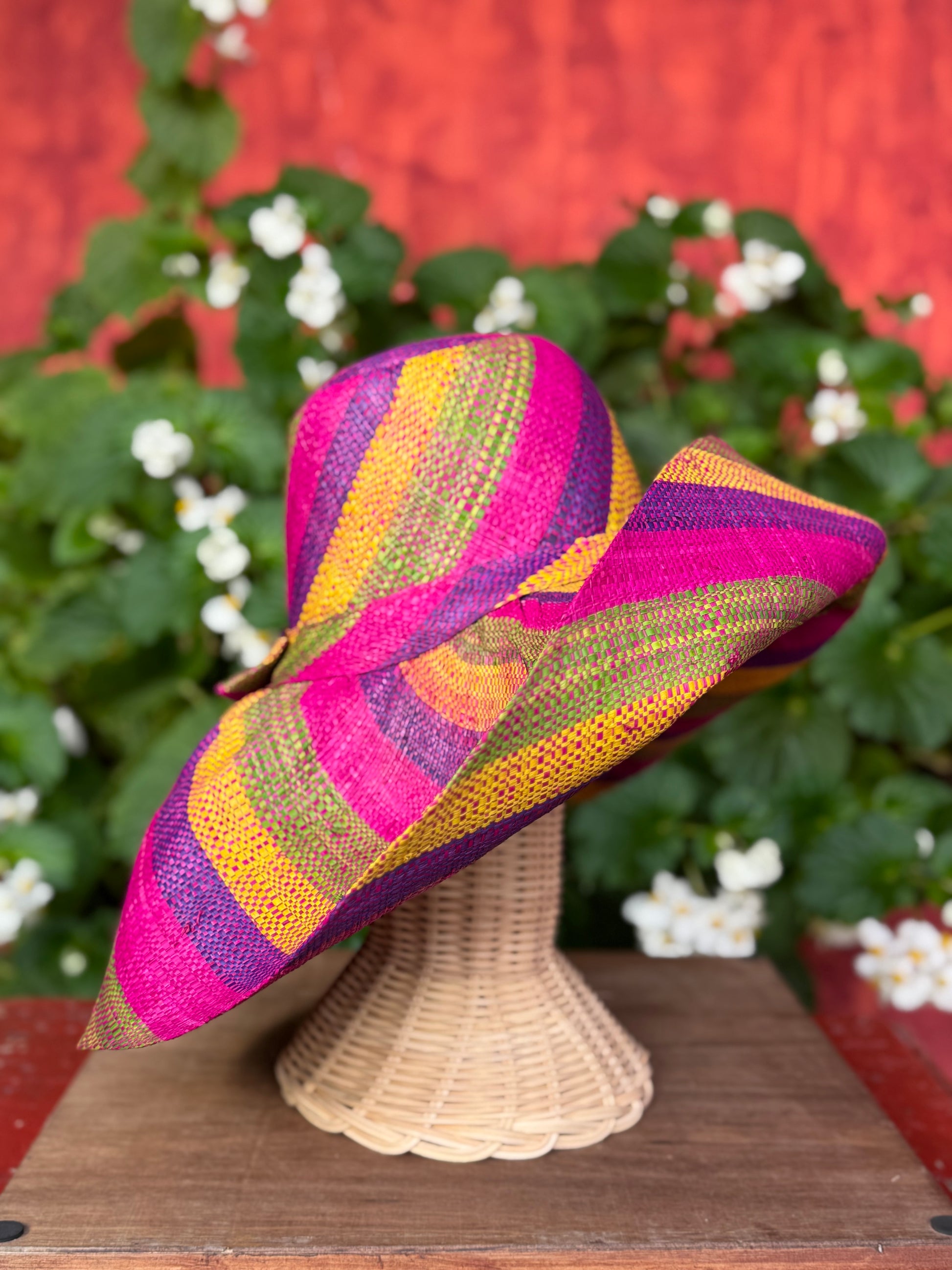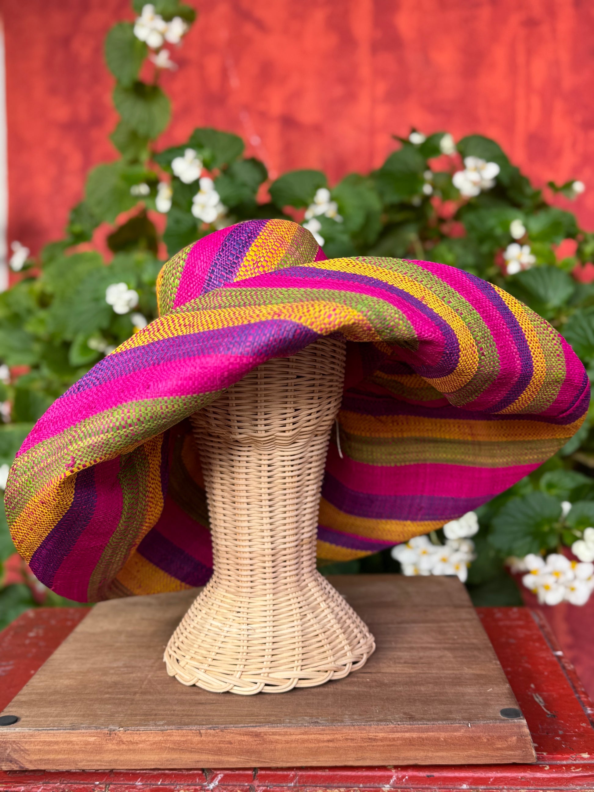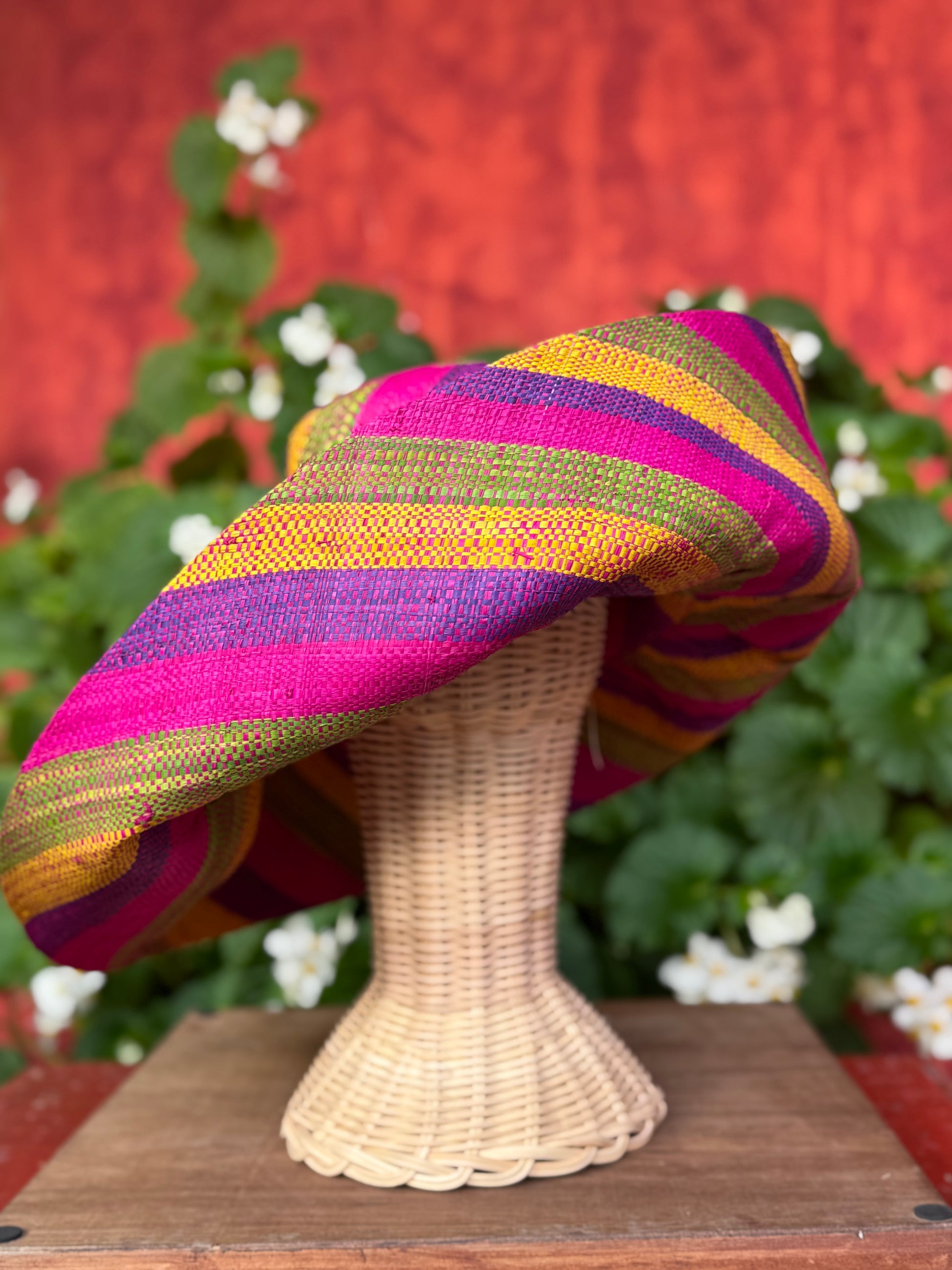 Pamela de rafia natural teñida a mano. Muy moldeable, se puede colocar de diferentes formas. Es el complemento perfecto.