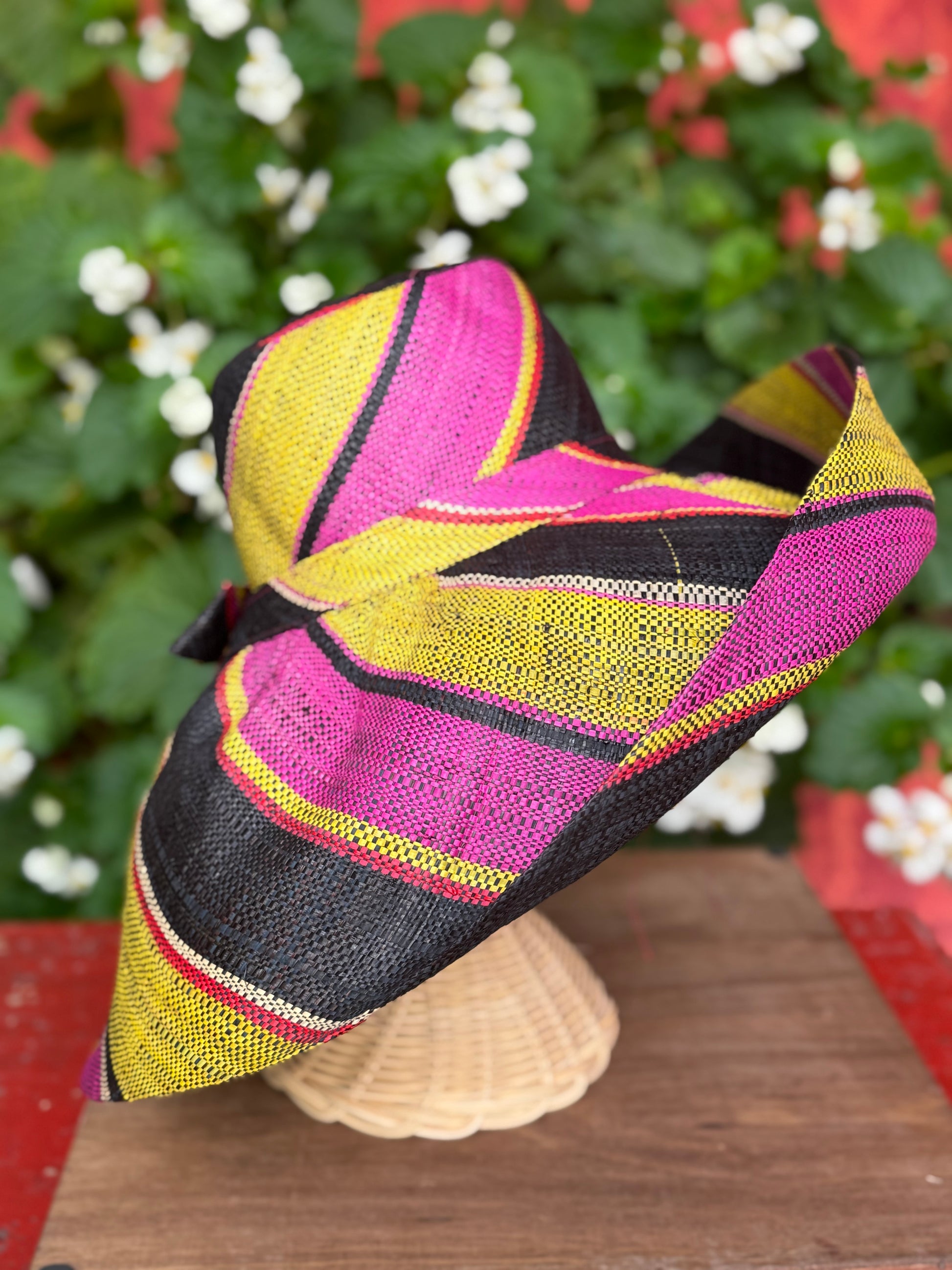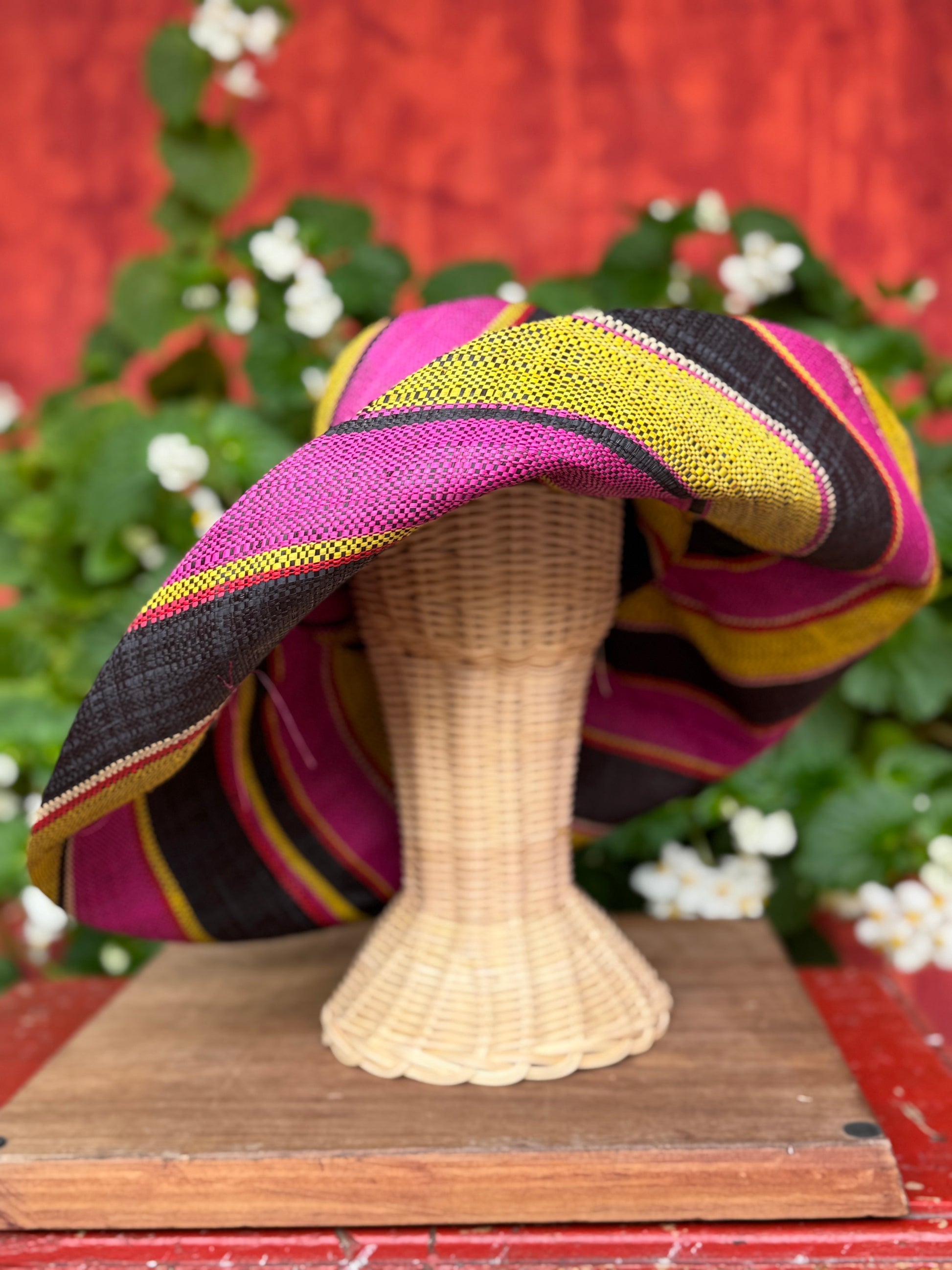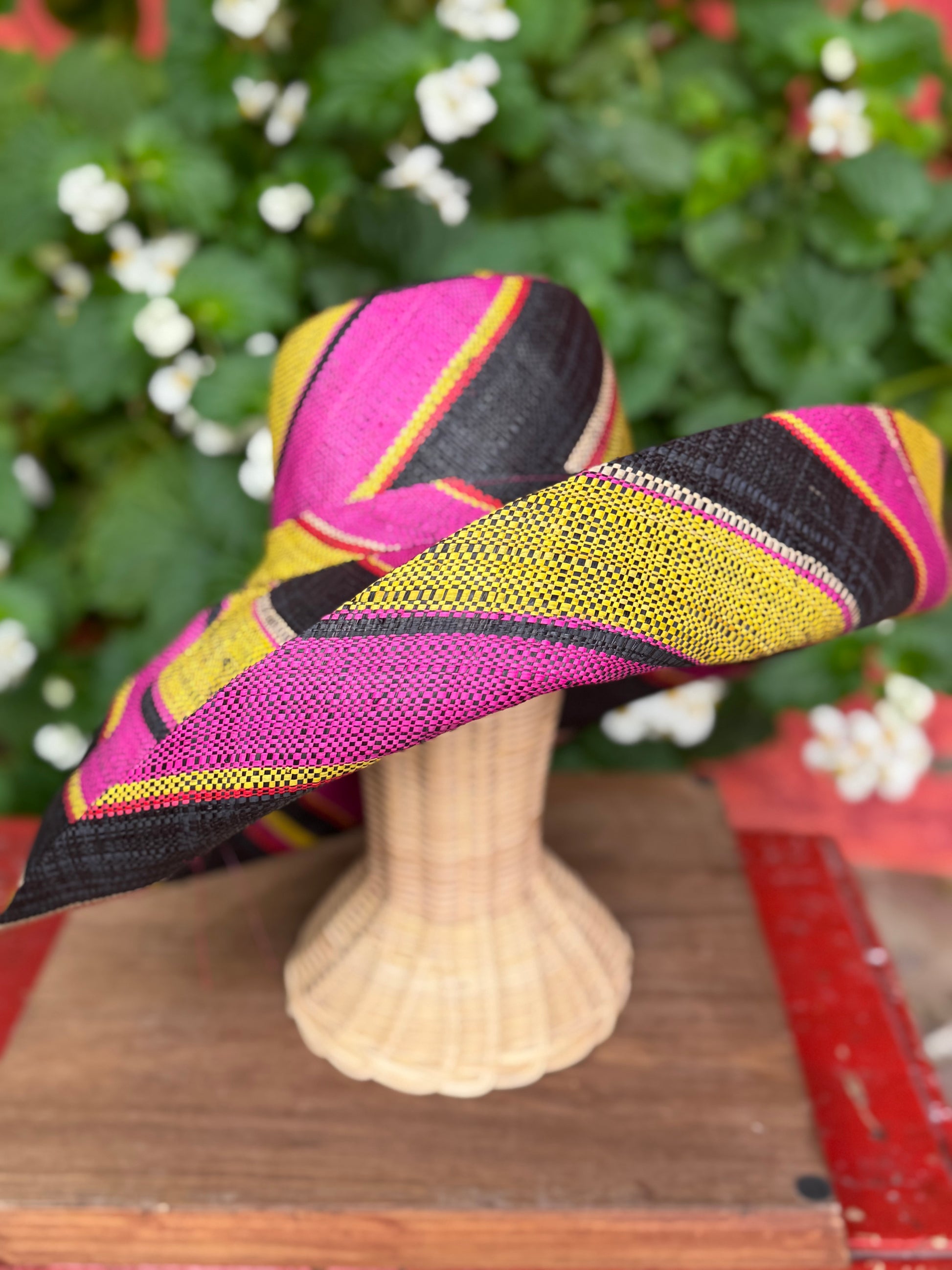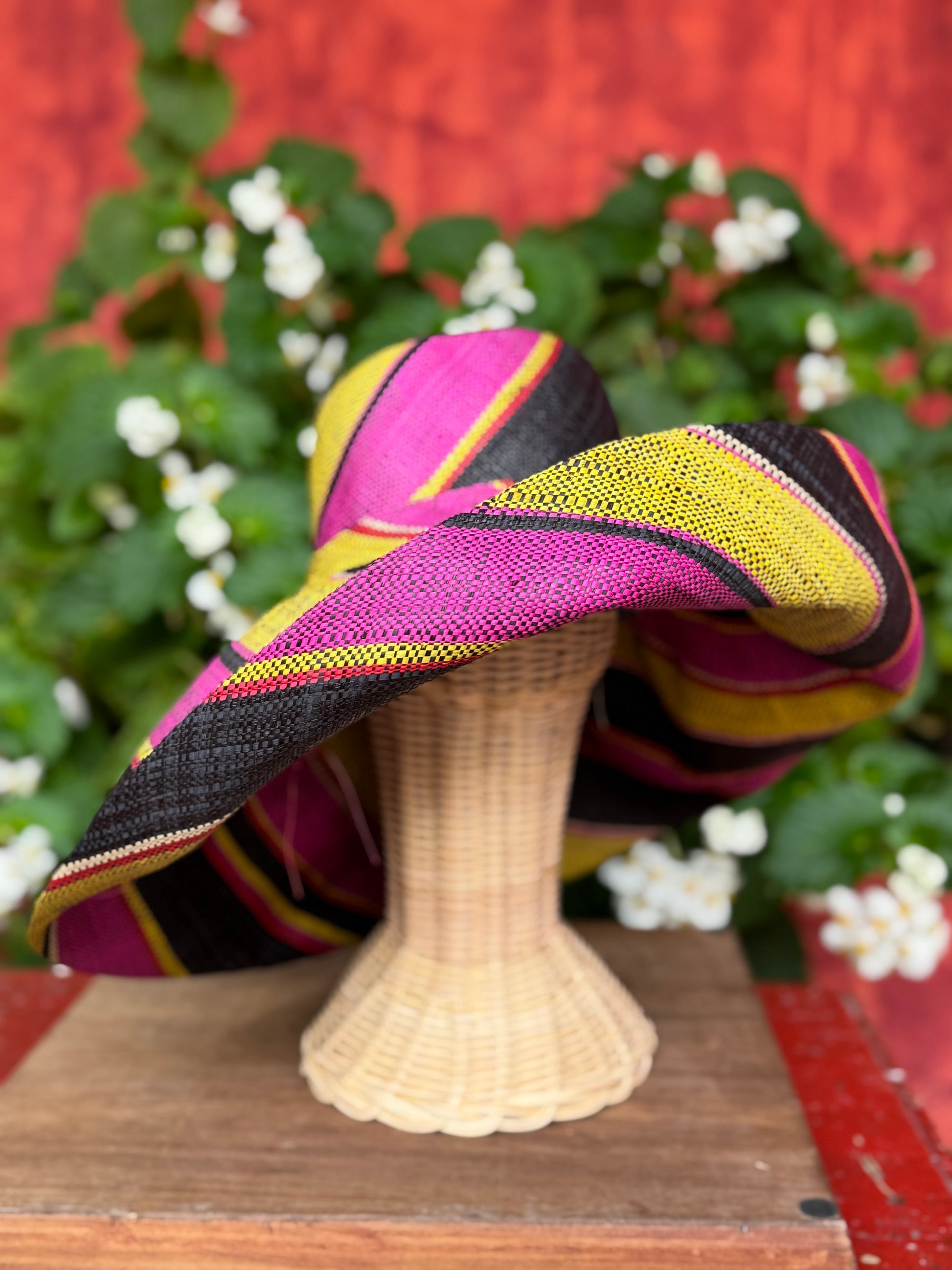 Pamela de rafia natural teñida a mano. Muy moldeable, se puede colocar de diferentes formas. Es el complemento perfecto.