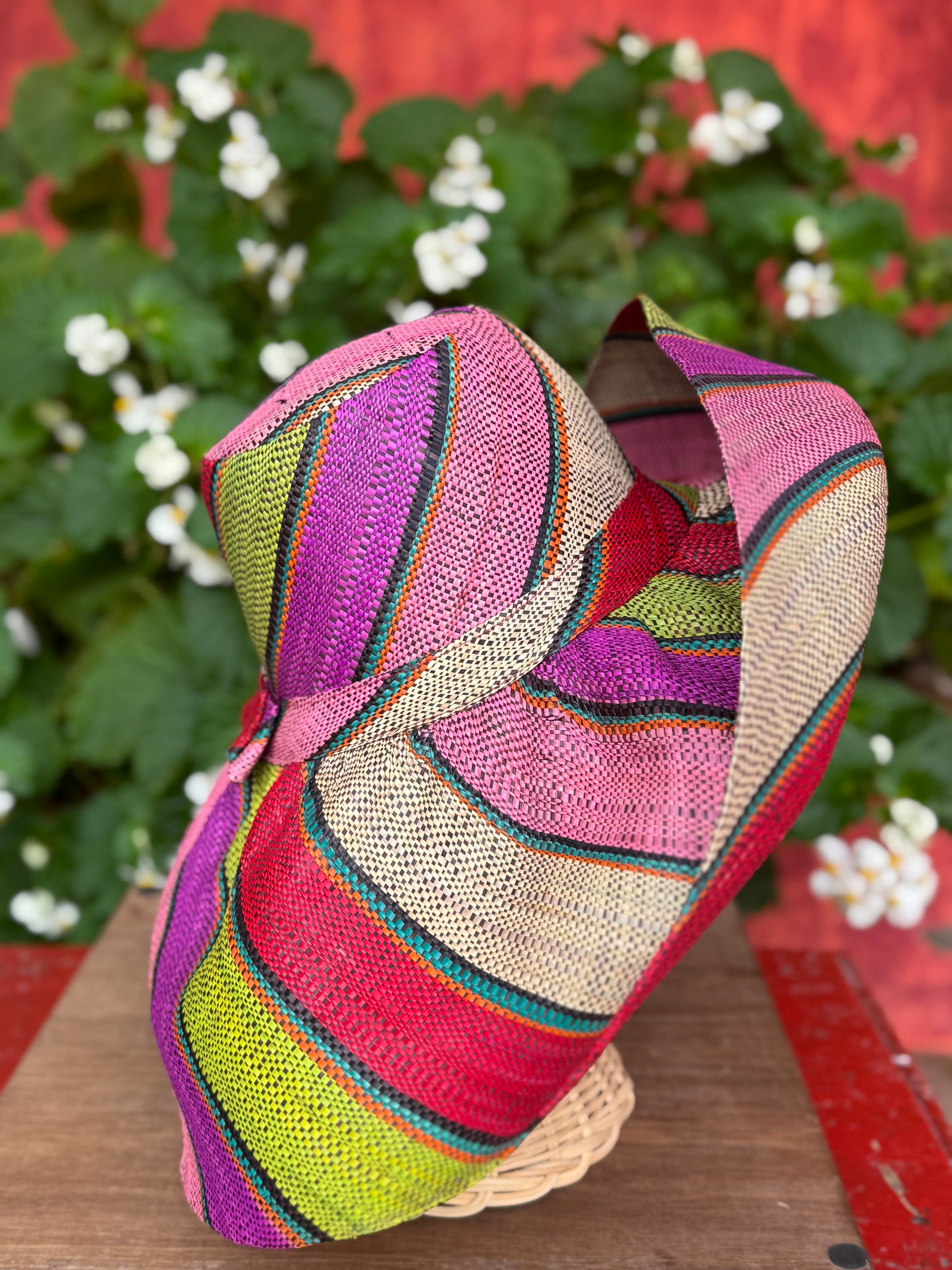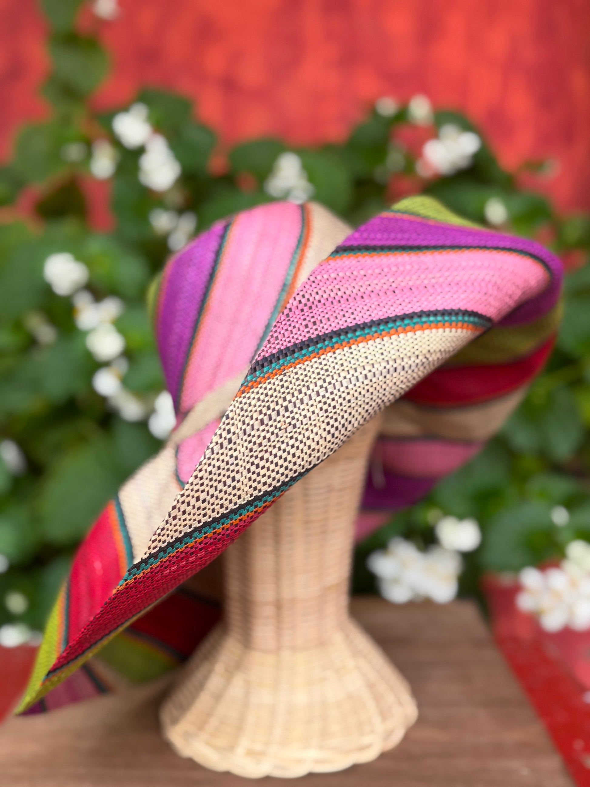 Pamela de rafia natural teñida a mano. Muy moldeable, se puede colocar de diferentes formas. Es el complemento perfecto.