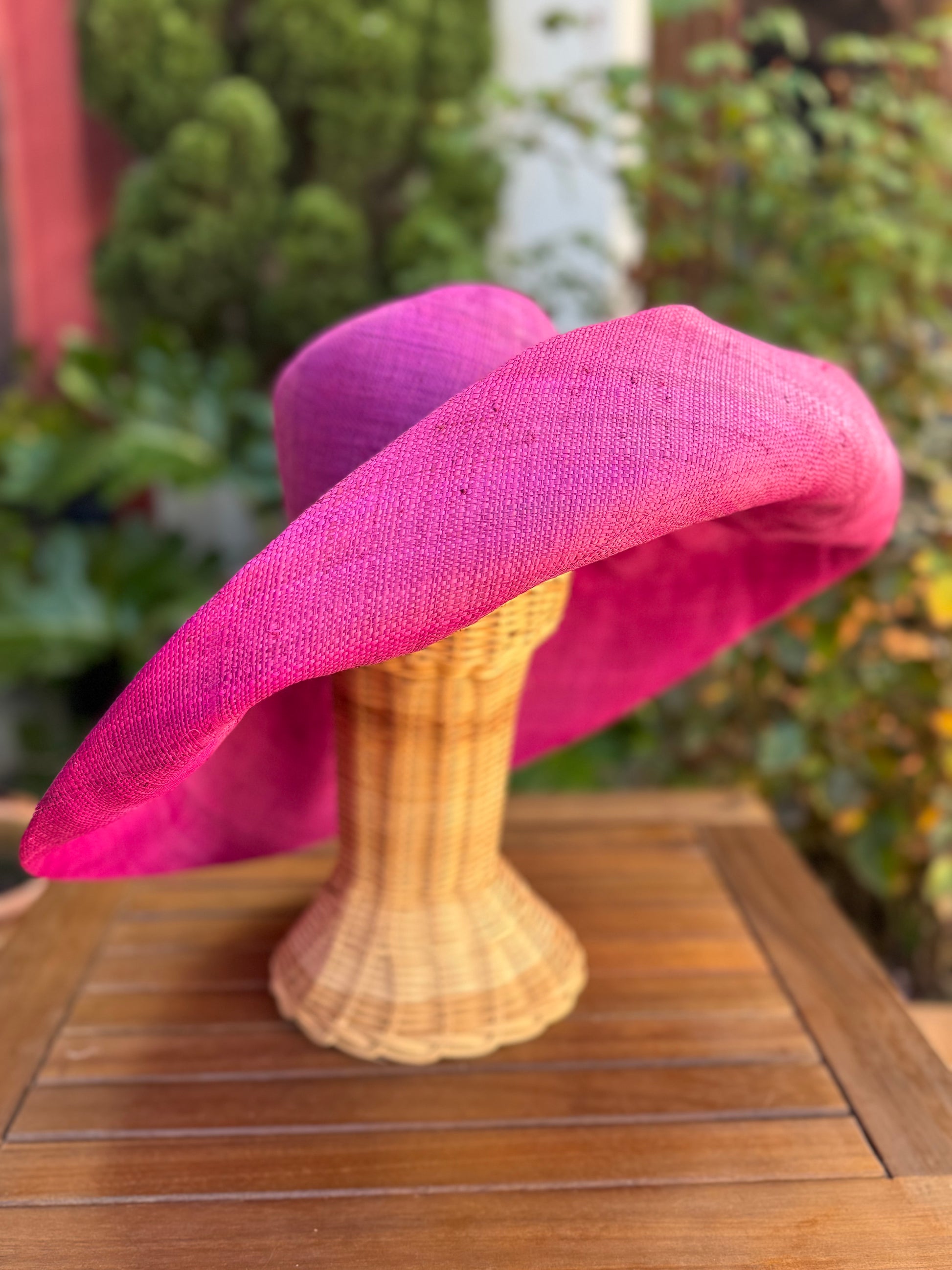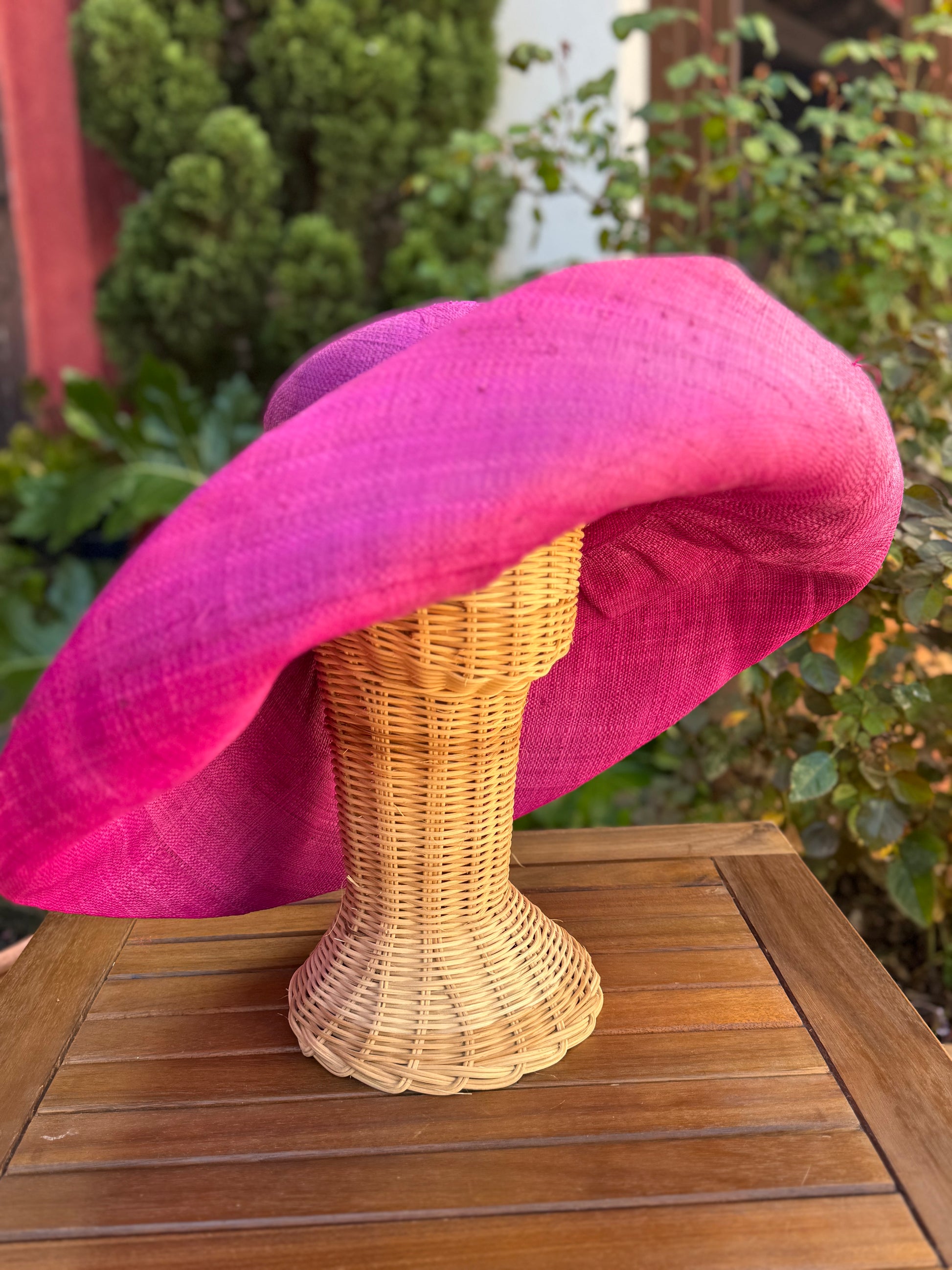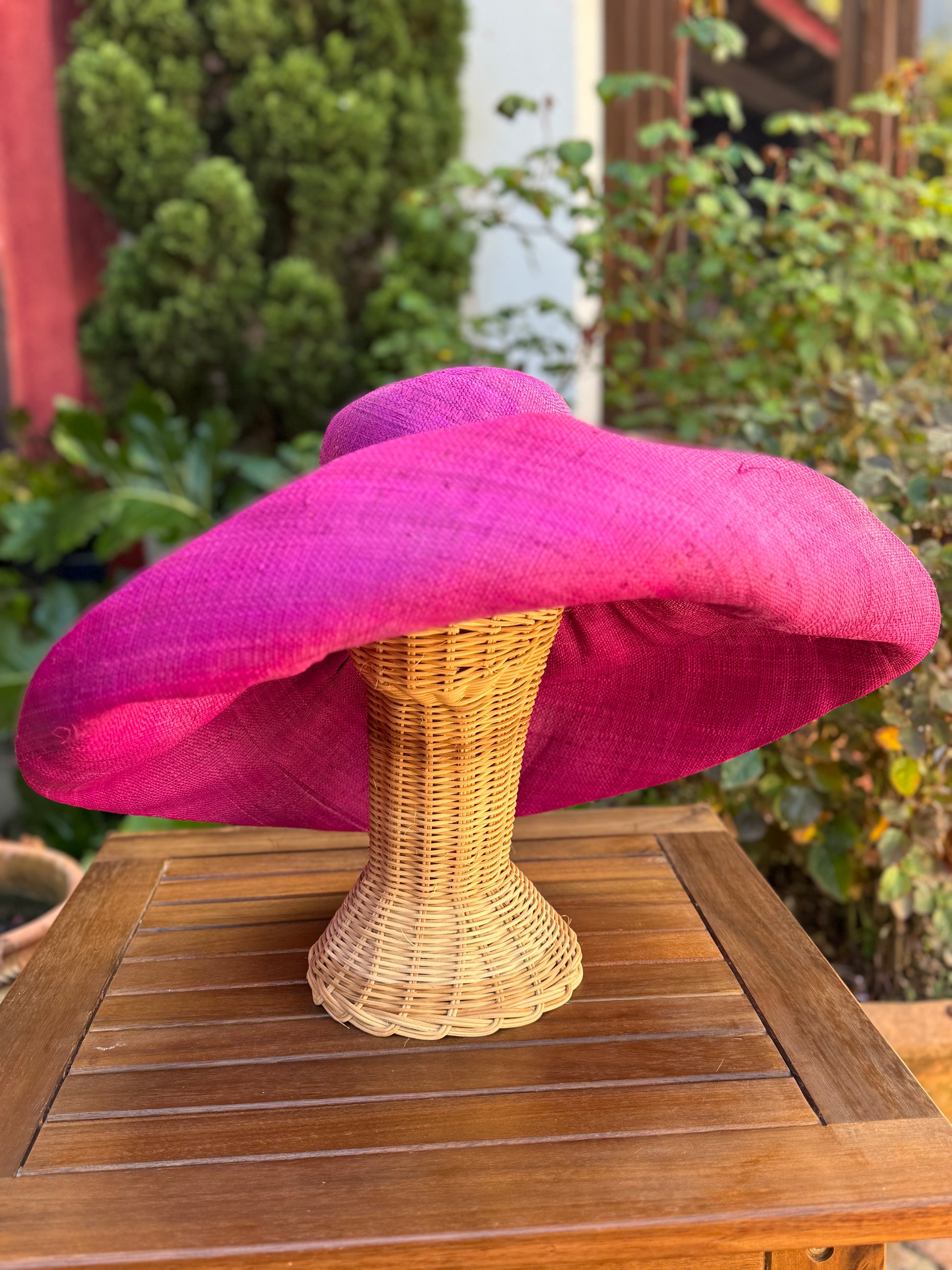 Pamela de rafia natural teñida a mano. Muy moldeable, se puede colocar de diferentes formas. Es el complemento perfecto.